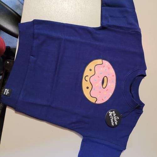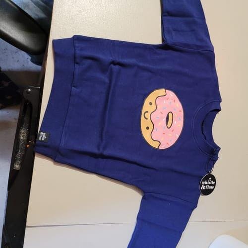 🍩 Doughnut sleep on our deliciously adorable Kawaii Doughnut! Printed in full colour on a navy blue organic cotton fleece sweatshirt. This gender-free design is perfect for everyone—looks cute, doughnut? 😋